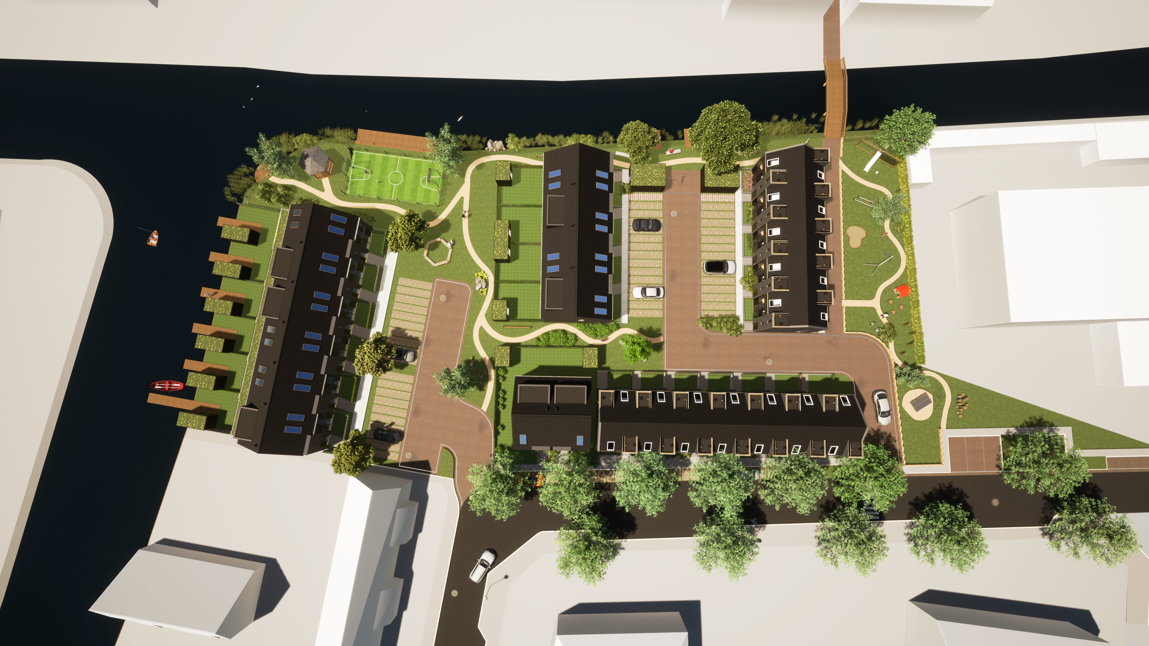 De locatie Jan ter Gouwweg ligt tussen de Jan ter Gouwweg en de Nagtglassloot in Naarden. FH Projecten bouwt hier 36 woningen: 12 dure, 12 middeldure en 12 goedkope woningen. In de openbare ruimte komen parkeerplekken en speel- en ontmoetingsplekken.